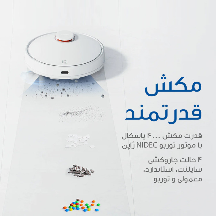 - جاروبرقی رباتیک S10 -داک شارژ - کابل برق -دفترچه راهنما -پد تی -برس اصلی - برس جانبی