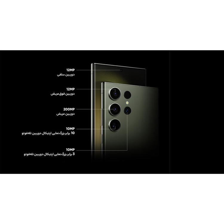 سامسونگ Galaxy S23 Ultra بهعنوان گل سرسبد گوشیهای هوشمند خانواده S23 با بهره بردن از مشخصات فنی قدرتمند معرفی شد. در نگاه اول از نظر طراحی در نظر گرفته شده، سامسونگ Galaxy S23 Ultra به نسبت نسل قبلی یعنی Galaxy S22 Ultra تغییرات زیادی نداشته و تقریبا هر دو گوشی از طراحی مشابهی بهره بردند. اما باید بدانید که Galaxy S23 Ultra به نسبت نسل قبلی، قدرتمندتر از همیشه وارد میدان رقابت شده است. در نمای روبهرویی این گوشی به صفحهنمایش شگفتانگیز با ابعاد 6.8 اینچ و رزولوشن 1440×3088 پیکسل از نوع Dynamic AMOLED 2X مجهز شده. از جمله قابلیتهای قدرتمند این صفحهنمایش میتوانیم به توانایی نمایش 501 پیکسل در هر اینچ، نرخ بروزرسانی 120 هرتز و حداکثر روشنایی 1750 نیت (nits) اشاره کنیم. تمام این مشخصات سبب شدهاند تا صفحهنمایش این گوشی، هرآنچه که از یک صفحهنمایش گوشی پرچمدار توقع دارید را برآورده کند. برای سنسورهای قسمت پشتی هم سامسونگ دست به تغییر جدیدی زد و این بار سنسور دوربین عریض با رزولوشن 200 مگاپیکسل را برای این گوشی هوشمند در نظر گرفت. سنسوری که بدون هیچ شکی توانایی ارائه عملکرد فوقالعادهای در نور روز و نور شب دارد. سنسور 10 مگاپیکسل از نوع پریسکوپتلهفوتو با توانایی زوم 10 برابری اپتیکال در کنار سنسور 10 مگاپیکسل از نوع تلهفوتو با قابلیت زوم 3 برابری اپتیکال و سنسور 12 مگاپیکسل از نوع فوق عریض (ultrawide)، دیگر سنسورهای دوربین قسمت پشتی این گوشی را تشکیل میدهند. سنسور دوربین عریض این گوشی توانایی ضبط ویدیو با حداکثر کیفیت 8K و سرعت 30 فریم در ثانیه را هم دارد. برای دوربین سلفی، سنسور با رزولوشن 12 مگاپیکسل در نظر گرفته شده که توانایی ضبط ویدیو با حداکثر کیفیت 4K و سرعت 60 فریم در ثانیه را دارد. حضور پردازنده قدرتمند اسنپدراگون 8 نسل دو شرکت کوالکام هم سبب شده تا سامسونگ Galaxy S23 Ultra بهراحتی هرچه تمامتر از پس اجرای بازیهای سنگین و باگرافیک بالا بربیاید. باتری با میزان ظرفیت 5000 میلیآمپرساعت و پشتیبانی از فناوری شارژ سریع با توان 45 وات هم از دیگر مشخصات در نظر گرفته شده برای این گوشی هوشمند است. قلم هوشمند S-Pen هم با قابلیتهای جذاب این گوشی را همراهی میکند.