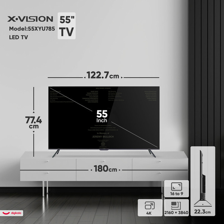 ابعاد تلویزیون با پایه : 774x223x1227 میلیمتر