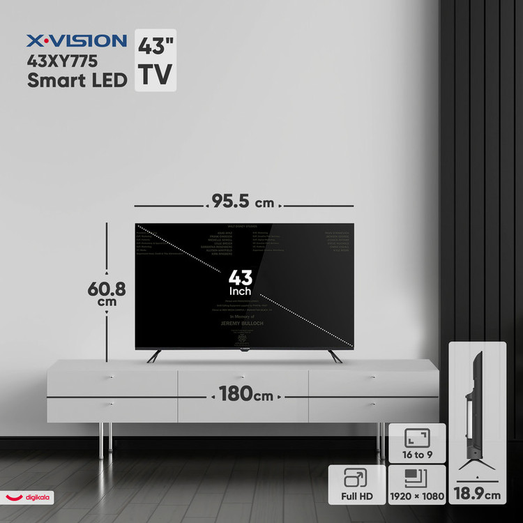 ابعاد تلویزیون با پایه : 955x189x608.5 میلیمتر