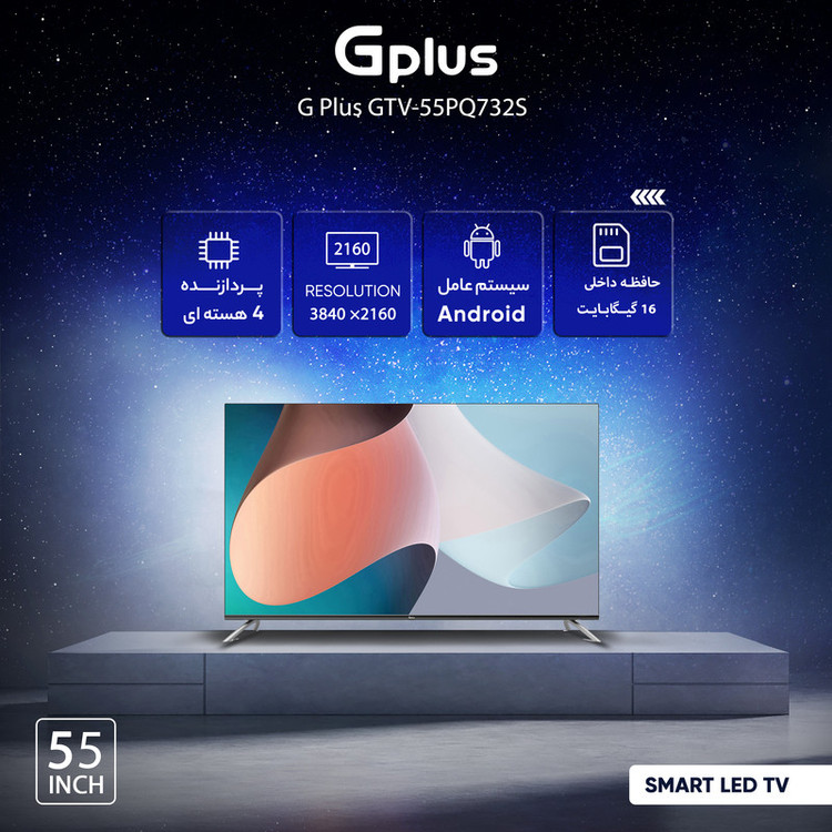 تلویزیون هوشمند ال ای دی جی پلاس مدل GTV-55PQ732S سایز 55 اینچ
