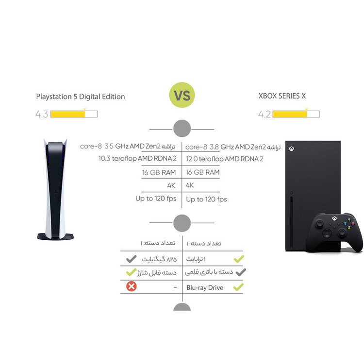 کنسول بازی سونی مدل Playstation 5 Digital Edition ظرفیت 825 گیگابایت یکی از محصولات بسیار حرفهای بوده که میتوانید در بازیهای کامپیوتری آن را تجربه کنید. این دستگاه یکی از بهترین و پرطرفدارترین کنسولها بازی در دنیا است که توسط کمپانی سونی ارائه شده است. این کنسول با اعمال تغییراتی ظاهری و سختافزاری طراحی شده است. درایوی در این مدل وجود ندارد و شما باید بهصورت دیجیتال بازیها را در آن داشته باشید. خروجی تصویر آن، از فرمت 4K پشتیبانی میکند. پردازشگر اصلی و گرافیکی این مدل تغییر اساسی کرده و از سری 4 قدرت بالاتری دارد. همچنین Playstation 5 Digital Edition بهواسطه پورت LAN یا اتصال بیسیم Wi-Fi به اینترنت متصل میشود و امکانات متعددی را برای کاربران فراهم میکند که بتوانند با عضویت در شبکهی PSN و پرداخت هزینه، بازیهای مورد نظر خود را خریداری و دانلود کنند یا اینکه به صورت آنلاین با دوستان خود بازی کنند. پورت USB از نوع Type-C به آن اضافه شده است. دستهها از طریق بلوتوث به کنسول متصل میشوند و برد مورد نیاز را پشتیبانی میکند. خروجی تصویر، پورت HDMI است و کیفیت 4K را پشتیبانی میکند. این مدل از حافظهی داخلی 825GB بهرهمند است.