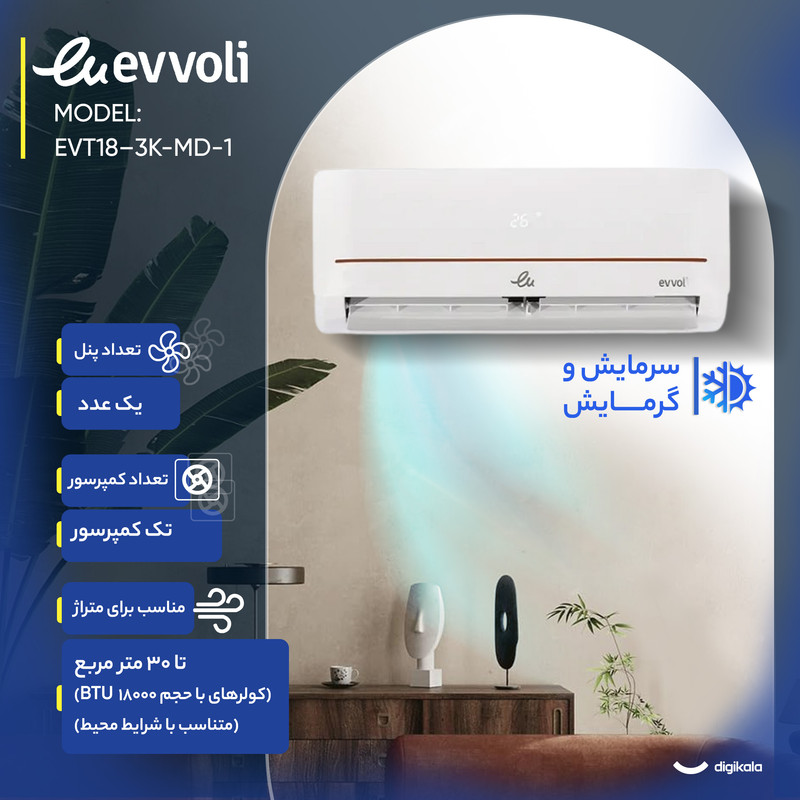کولر گازی اسپلیت دیواری 18000 دور ثابت ایوولی مدل گرند t3