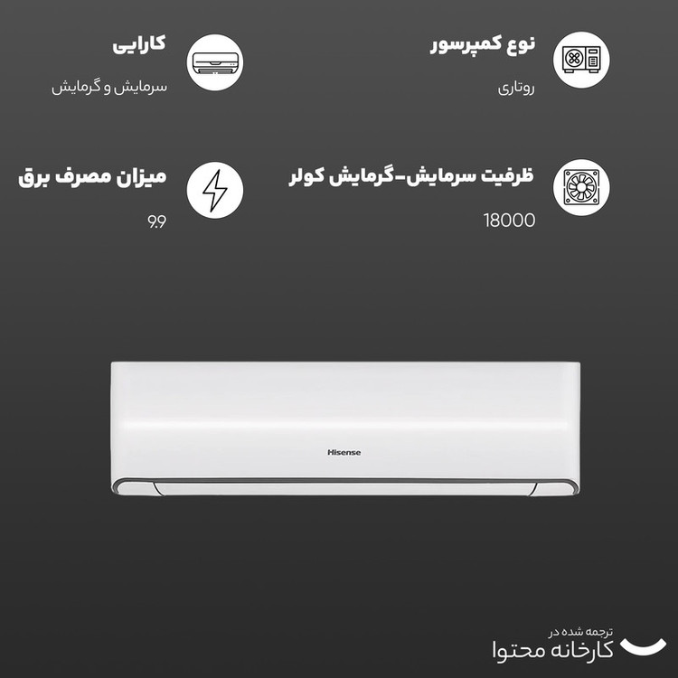 کولر گازی اسپلیت دیواری 18000 دور ثابت هایسنس مدل HRH-18TQ