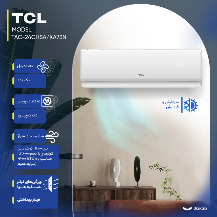 کولر گازی اسپلیت دیواری 24000 دور ثابت تی سی ال مدل TAC-24CHSA/XA73N