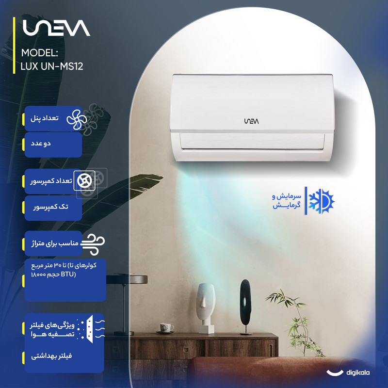 کولر گازی اسپلیت دیواری 12000 دور ثابت یونیوا مدل UN-MS12 LUX