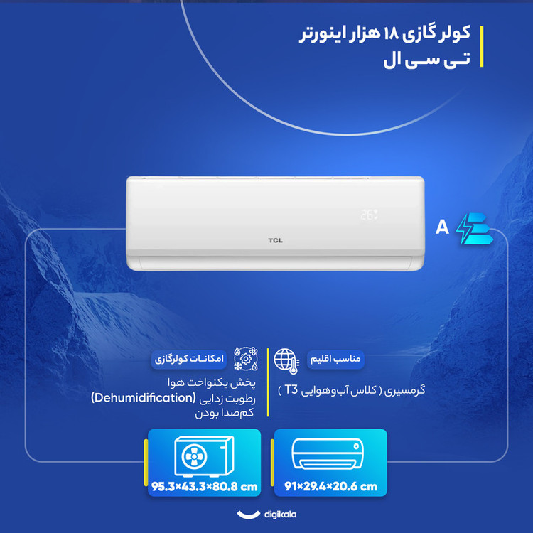 کولر گازی اسپلیت دیواری 18000 اینورتر تی سی ال مدل TAC-18CHSA/XAC1IT3
